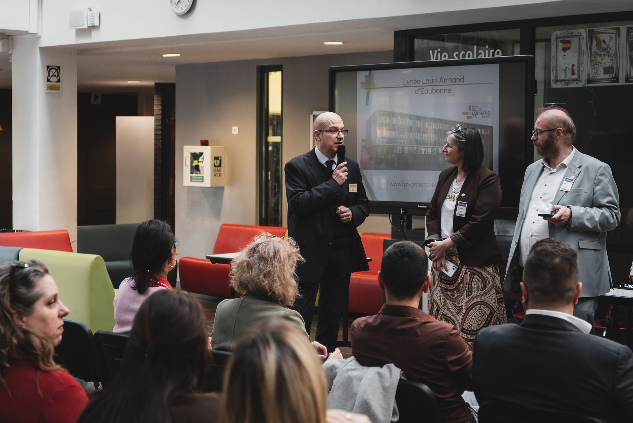 La soirée a débuté par une présentation de l’établissement par Monsieur Duval, chef d’établissement, suivie de celle des formations par Monsieur Aufrère, directeur délégué aux formations.
