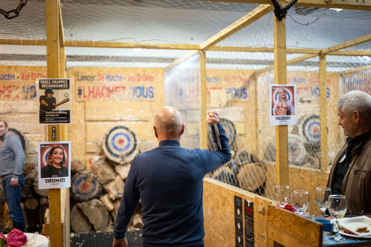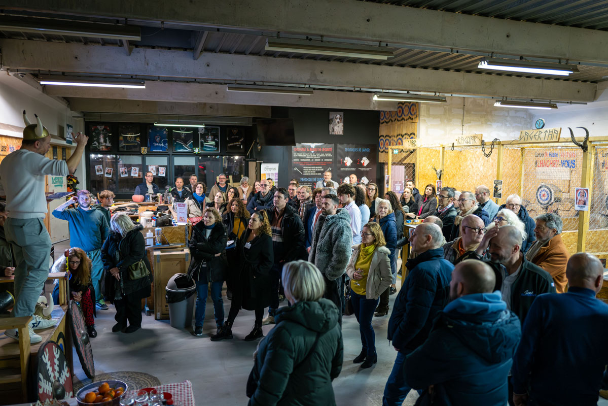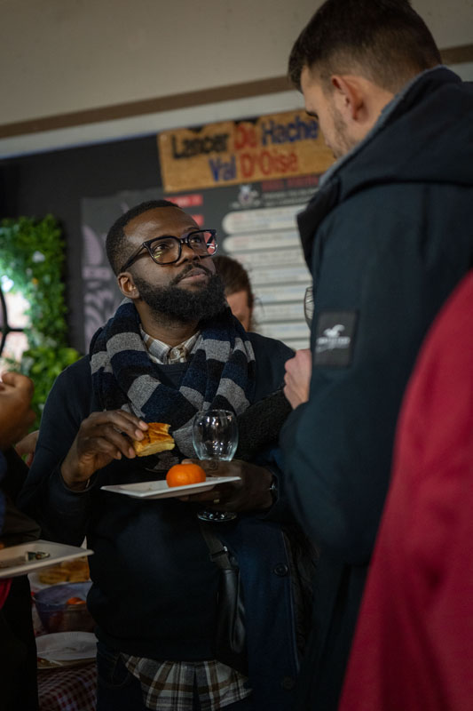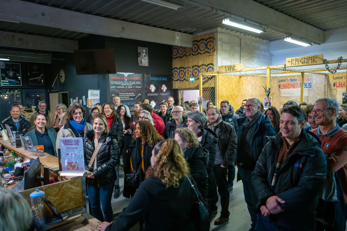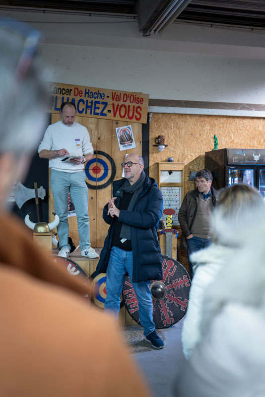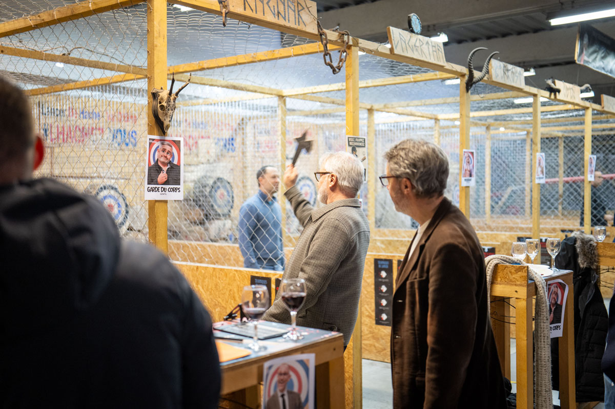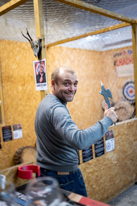 Côté animation, le lancer de hache a fait son petit effet. Certains sont arrivés prudemment, d’autres très confiants… mais beaucoup se sont rapidement pris au jeu, encouragés par l’ambiance générale. Concentration et fous rires étaient au rendez-vous.